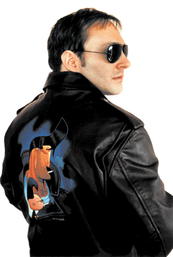 Marc in 1984, wearing his First Comics "roadies for God" jacket (above) -- and in 1996.